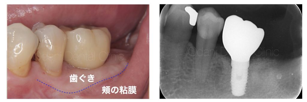 また、歯ぐきが不足している場合は、歯ブラシするとインプラントの周りに痛みを伴い、清掃困難になります。