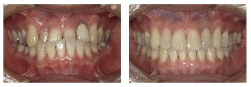 先行して矯正治療を進めていき、歯の位置が定まってからインプラント治療を行なっていきました。