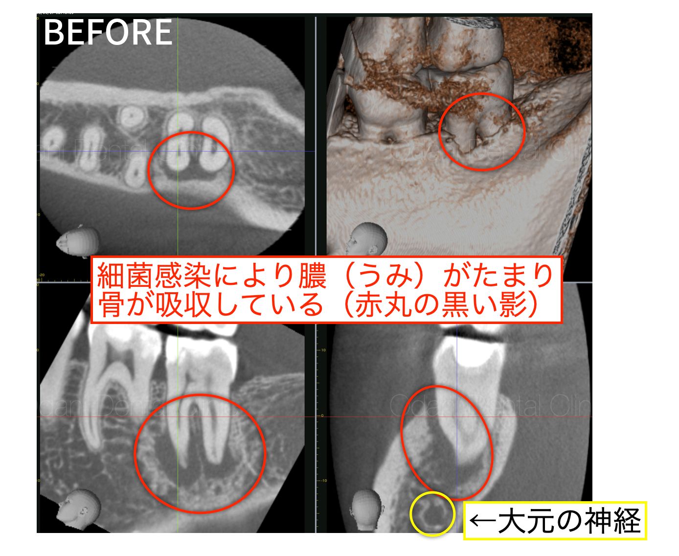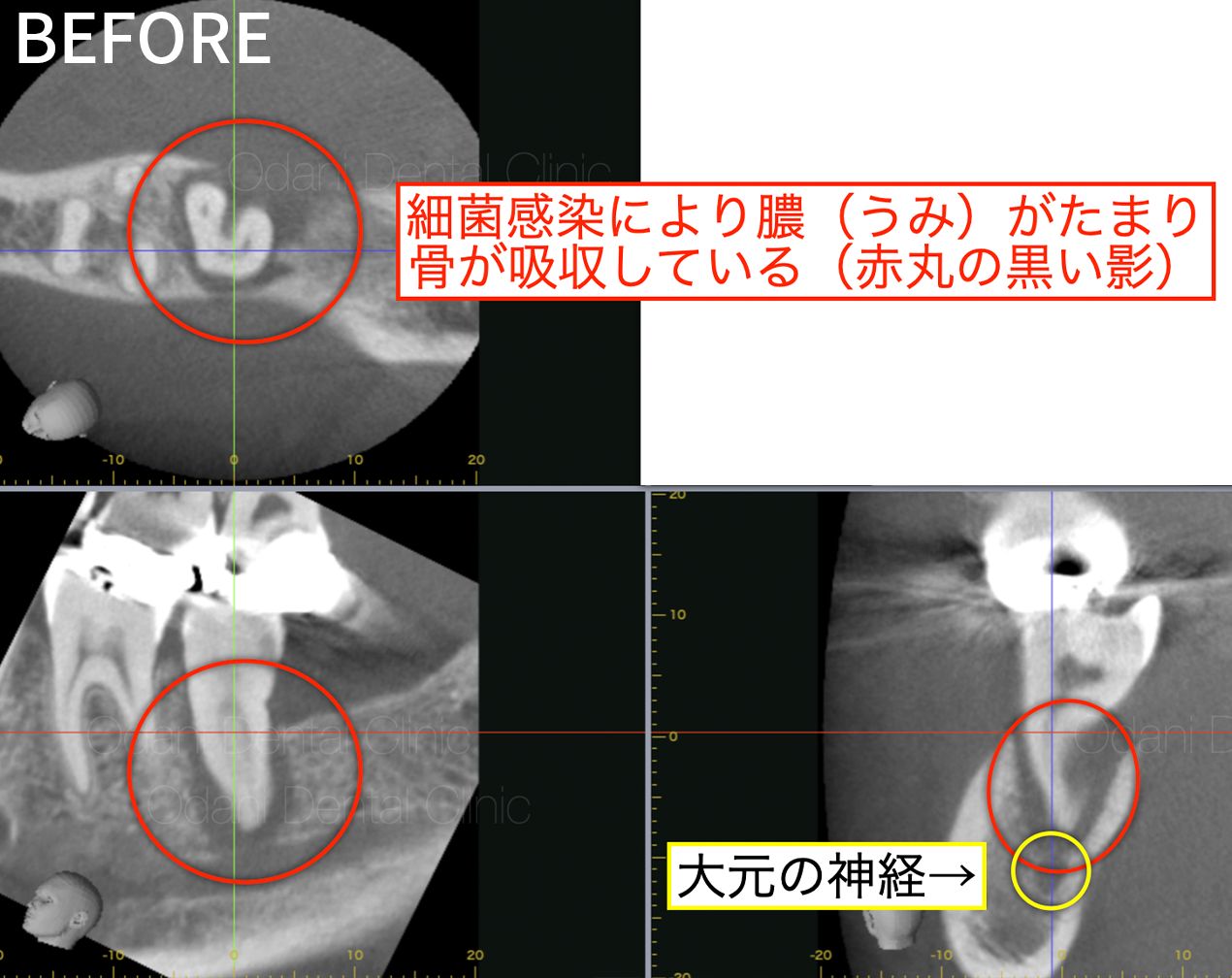 | 主訴 | 他院にて根管治療の必要性を指摘される |