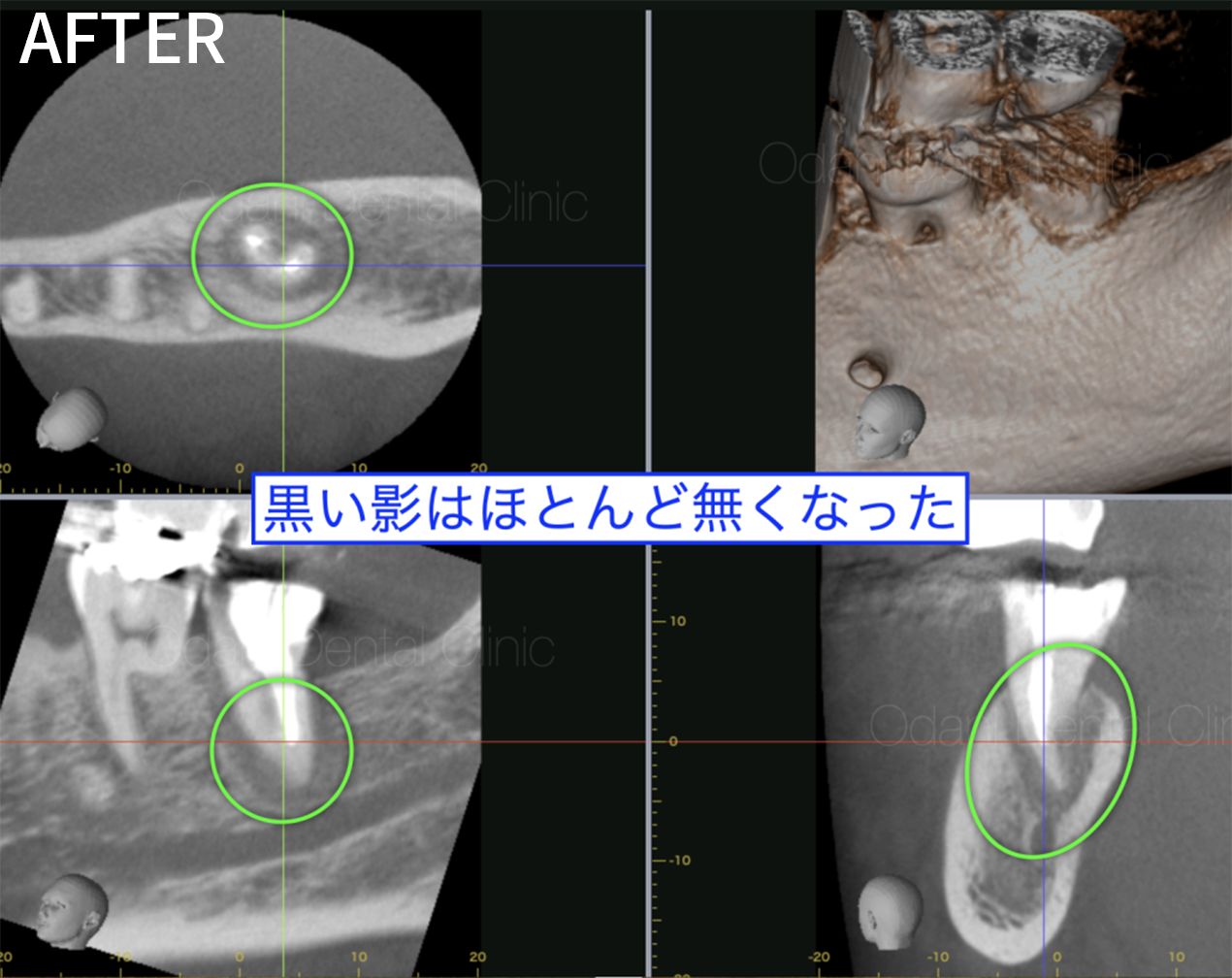 | 期間 | 根管治療後、約3か月経過観察を行い、CT画像にて治癒が確認できたため、最終的なかぶせ物の治療へ移行しました。 |